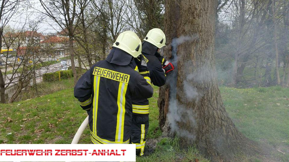 Vom Baum selbst brannte im unteren Bereich des Stammen lose Rinde und morsche Teile des Baumstamms.