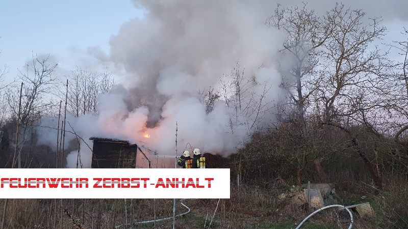 Wir wurden alarmiert, weil hinter dem Bahnhofsgelände eine alte Gartenlaube brannte.