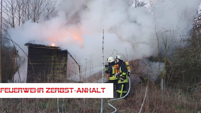 Das halb verfallene "Gebäude" war uns schon von einem früheren Einsatz bekannt, dieses Mal stand die Laube in Vollbrand. Das Feuer wurde mit einem C-Strahlrohr gelöscht.