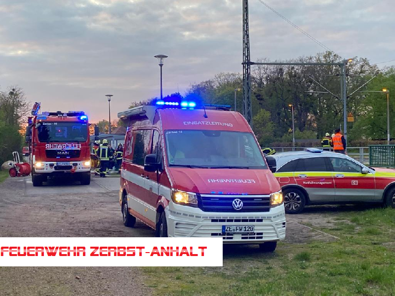 Wir wurden zu einem Bahnunfall auf dem Gleis 2 des Zerbster Bahnhofs alarmiert. Hier war eine Person von einem durchfahrenden Zug erfasst worden, leider kam jede Hilfe zu spät.