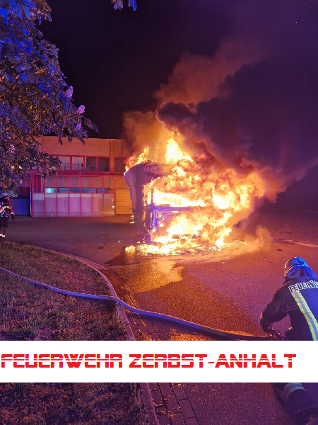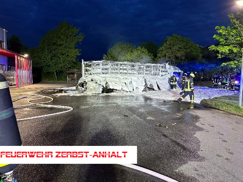 Mit den Kameraden der Freiwilligen Feuerwehr Jütrichau wurden wir zum Brand eines mit Wäsche beladenen LKW auf einem Betriebsgelände am Ahornweg alarmiert.