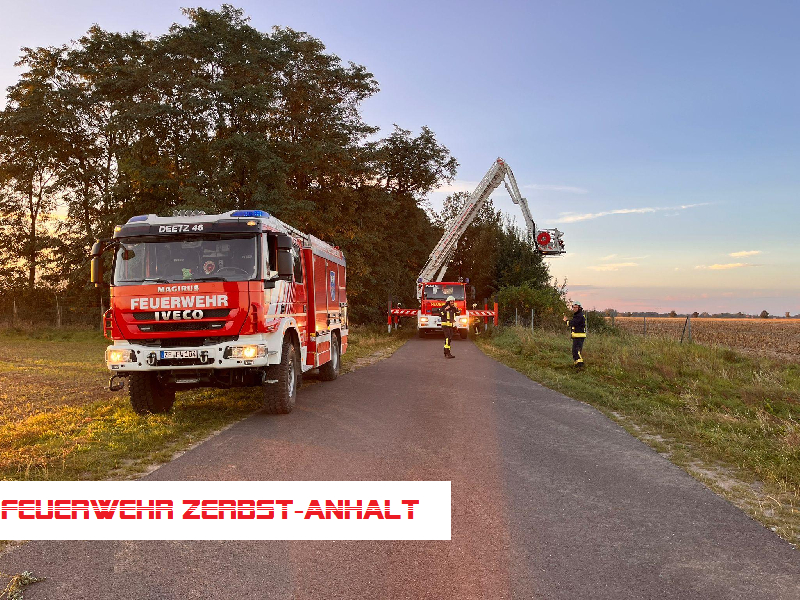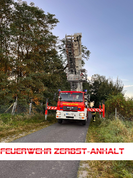 Unser Hubsteiger wurde zur Unterstützung der Kameraden der Freiwilligen Feuerwehr Deetz alarmiert, weil an der Straße Richtung Rosian ein Baum umzustürzen drohte.