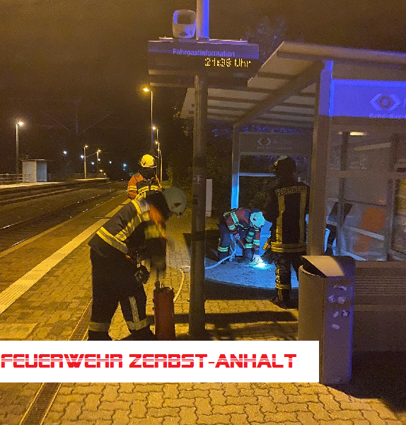 Wir wurden zum Zerbster Bahnhof gerufen. Hier brannte am Gleis 1 eine Sitzbank - sicherlich nicht von allein.