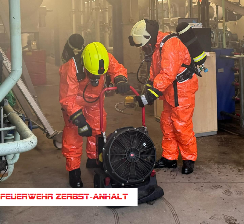 Neben uns waren die Kameraden der Freiwilligen Feuerwehren Deetz-Badewitz und Jütrichau vor Ort, die mit uns gemeinsam den ABC-Zug der Stadt Zerbst bilden. Vorsorglich war auch die Freiwillige Feuerwehr Lindau alarmiert worden, um im Bedarfsfall ausreichend Atemgeräteträger vor Ort zu haben.