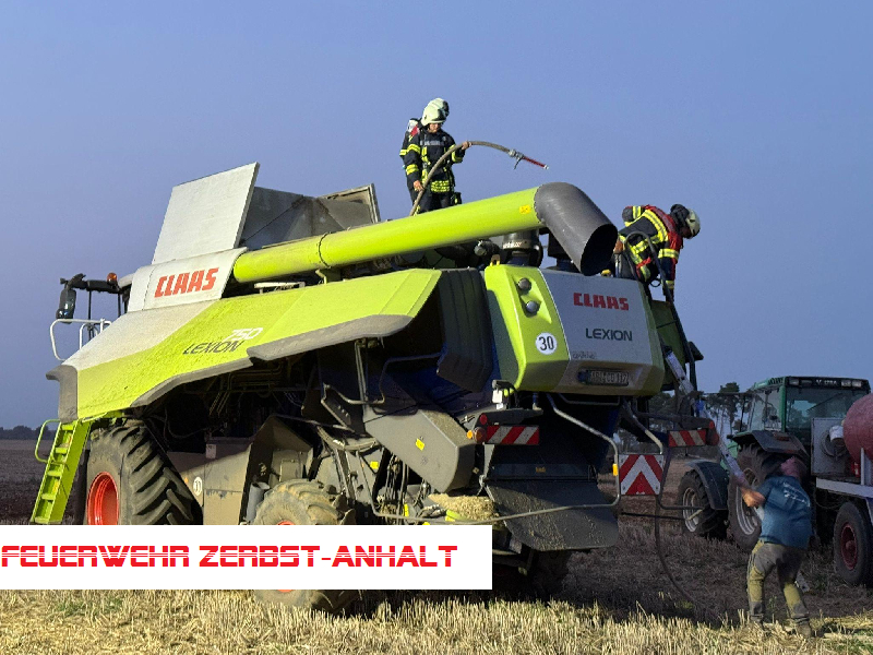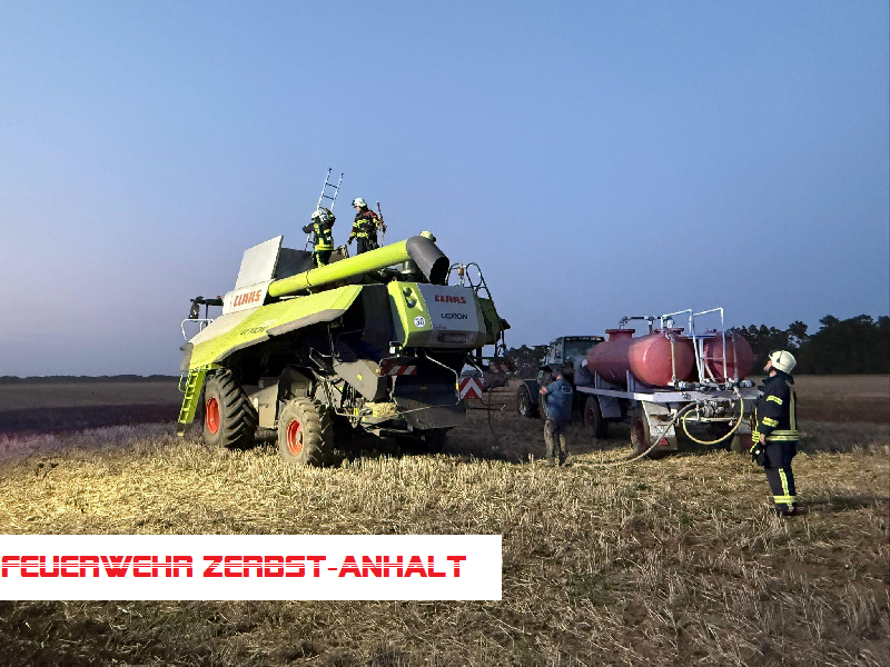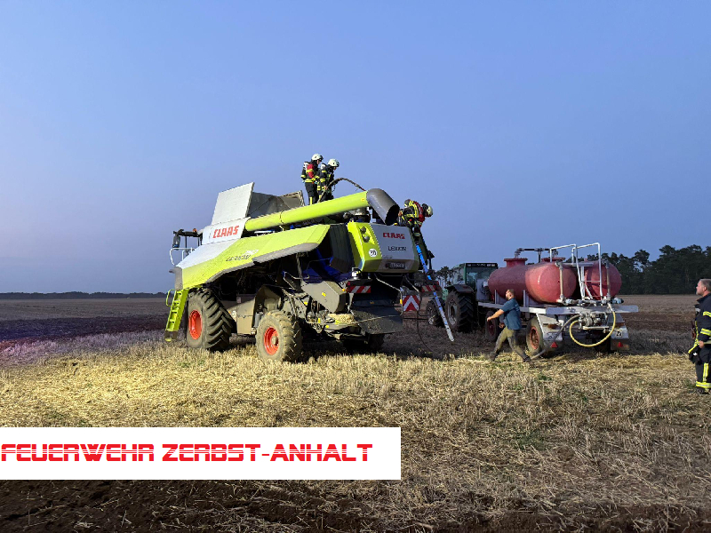 Wir wurden mit den Kameraden der Freiwilligen Feuerwehr Deetz-Badewitz zum Brand eines Mähdreschers auf einem Feld bei Gollbogen alarmiert.