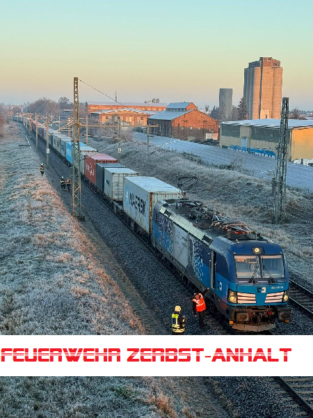 Wir wurden alarmiert, weil Zeugen an einem Güterzug Flammen im Achsbereich eines Waggons bemerkt hatten. Der Zug sollte nach ersten Informationen im Bereich des Bahnhofs zum Stehen kommen. Tatsächlich haben wir den Zug dann im Bereich der Eisenbahnbrücke am Ahornweg gefunden.
