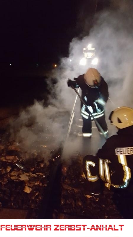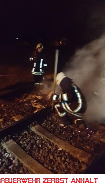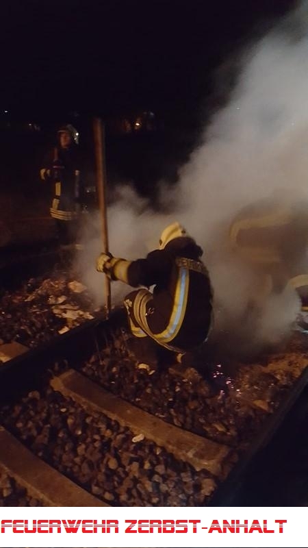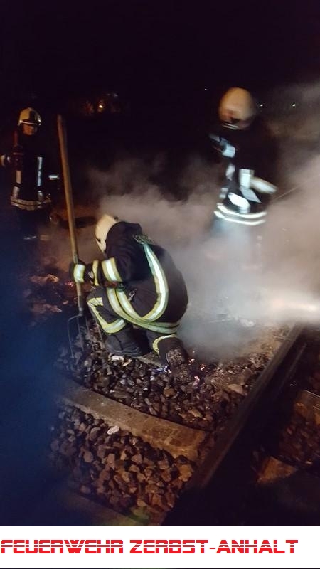Durch die FF wurde der Brand gelöscht und die Brandrester von der Gleisstrecke geräumt.