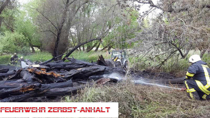 Brand von ca. 400 qm wild übereinander gelagerter Baumstämme. Der Brand wurde durch die FF mit Wasser gelöscht. Zusätzlich eingesetzt wurde der Radlader vom Bauhof.