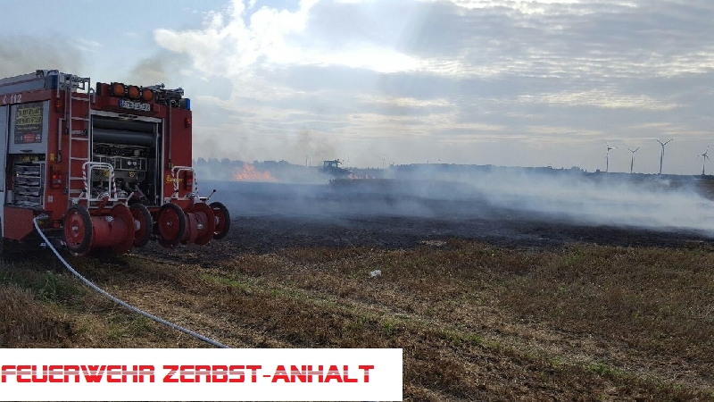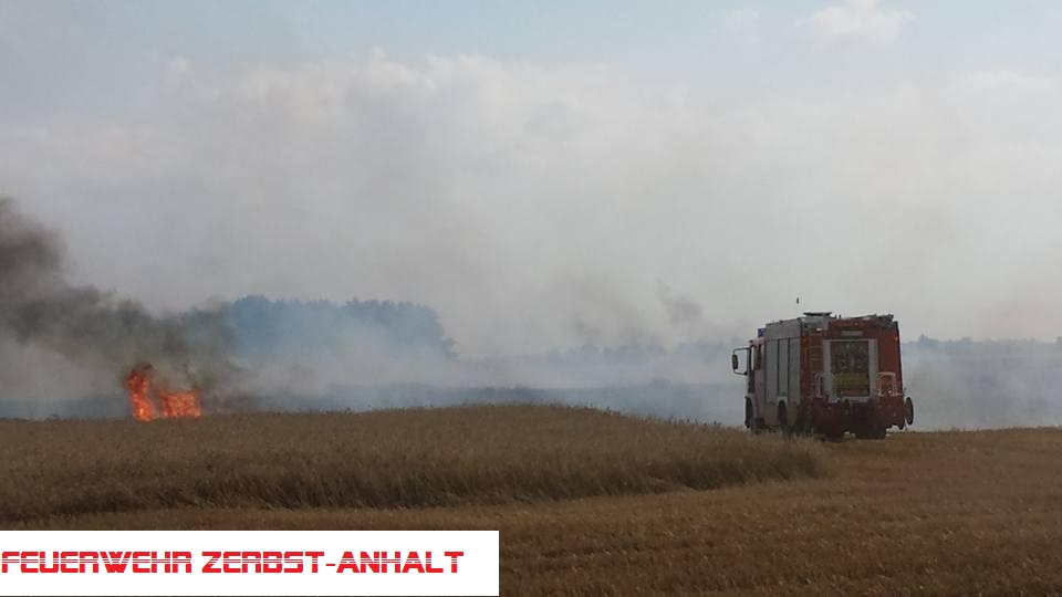 Bei unserer Ankunft brannte ein teilweise noch nicht abgeerntetes Feld. Dieses wurde mit Wasser gelöscht.