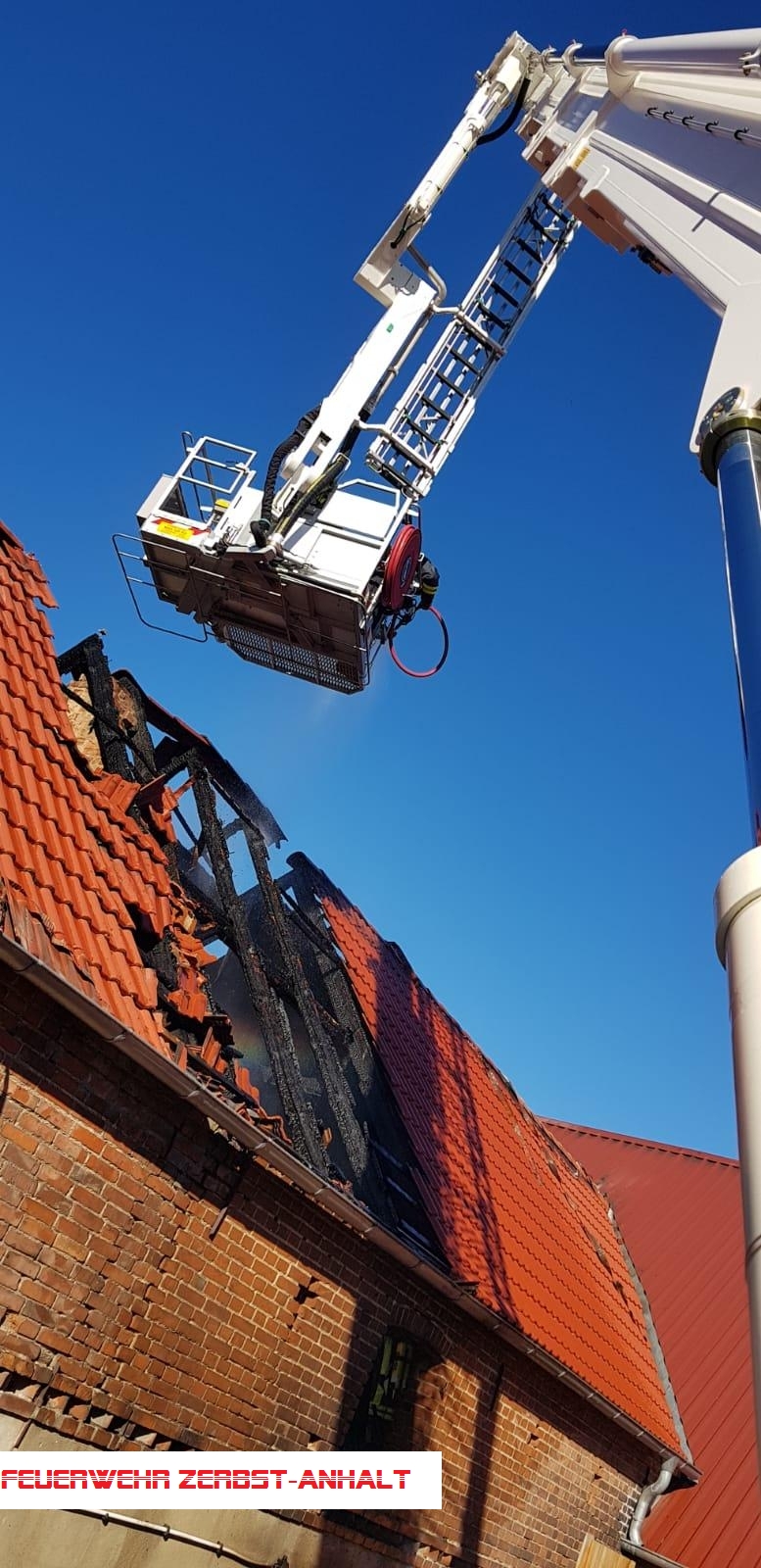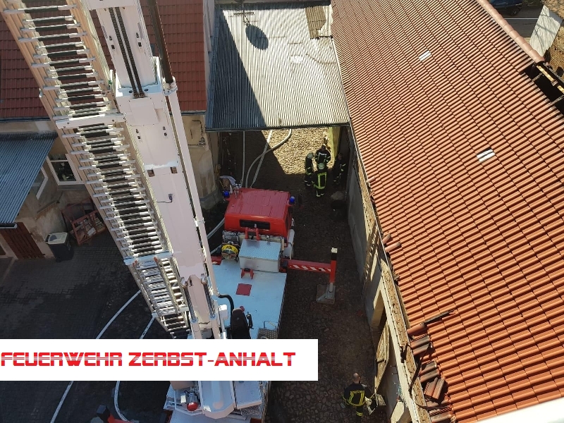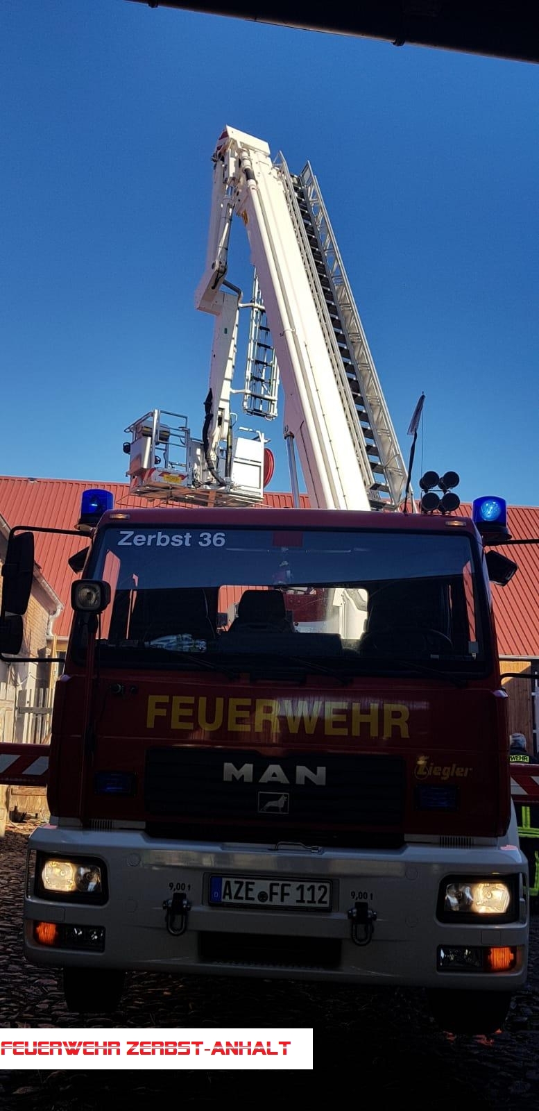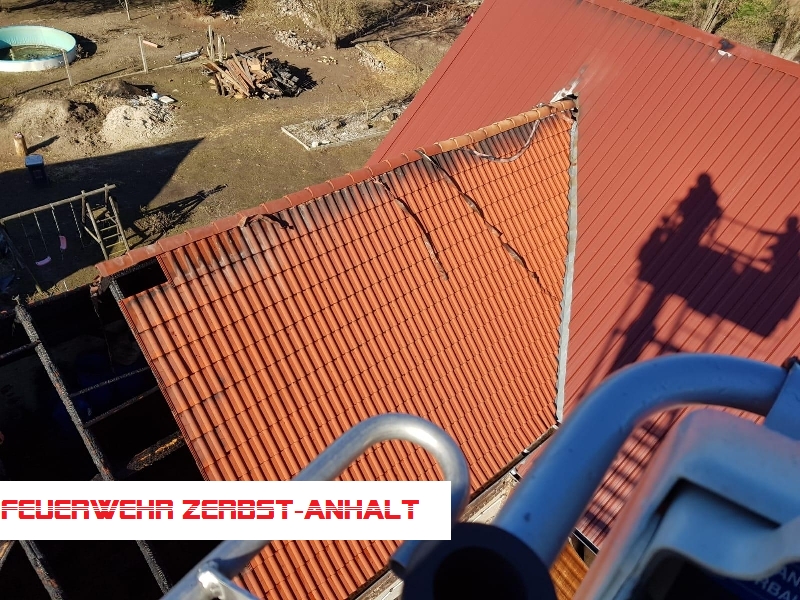 Wir wurden alarmiert, um die bereits vor Ort befindlichen Kameraden mehrerer Ortswehren mit dem Hubsteiger bei der Bekämpfung eines Dachstuhlbrandes zu unterstützen. Bei unserem Eintreffen waren die offenen Flammen bereits niedergeschlagen.