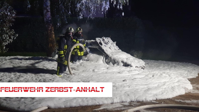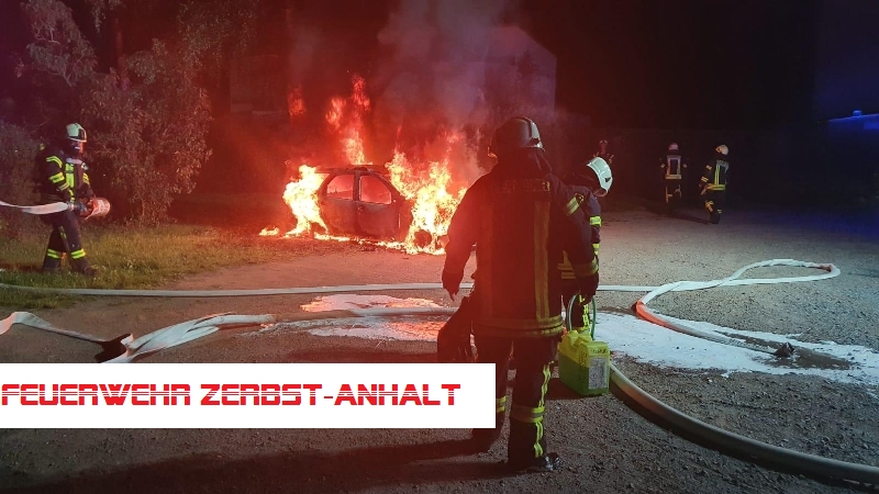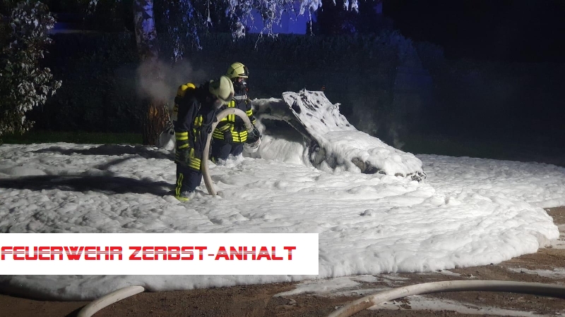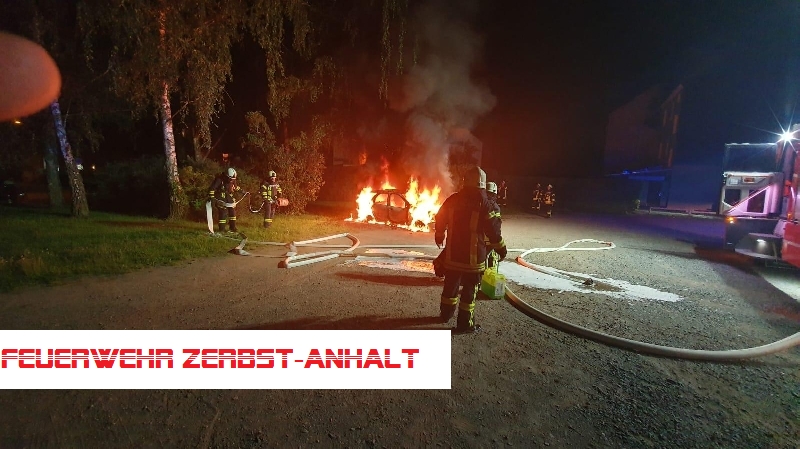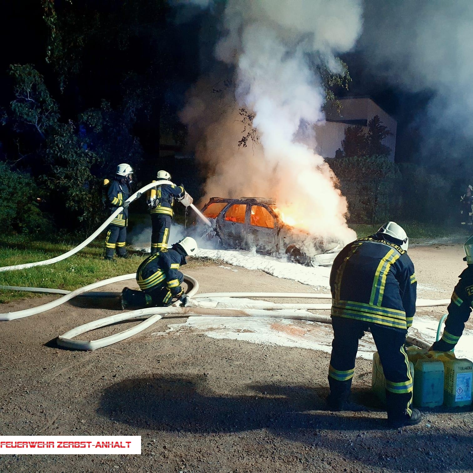 Bei unserem Eintreffen stand das Fahrzeug bereits im Vollbrand. Das Feuer wurde mit Schaum gelöscht.