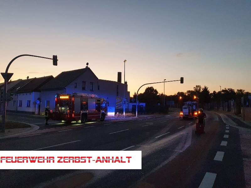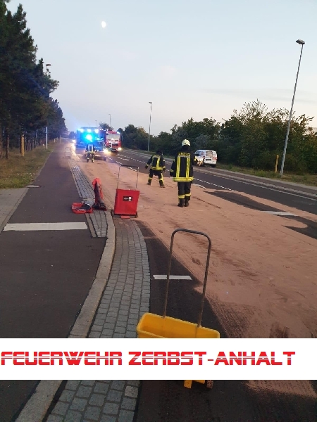 Wir wurden wegen einer Ölspur auf der Roßlauer Straße alarmiert. Diese erstreckte sich von der Kreuzung zur Marcellstraße bis zum Alten Teich.