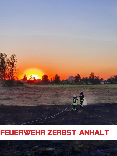 Wir wurden zur Zerbster Amtsmühle gerufen. Dort brannte eine Wiese mit trockenem Heu.