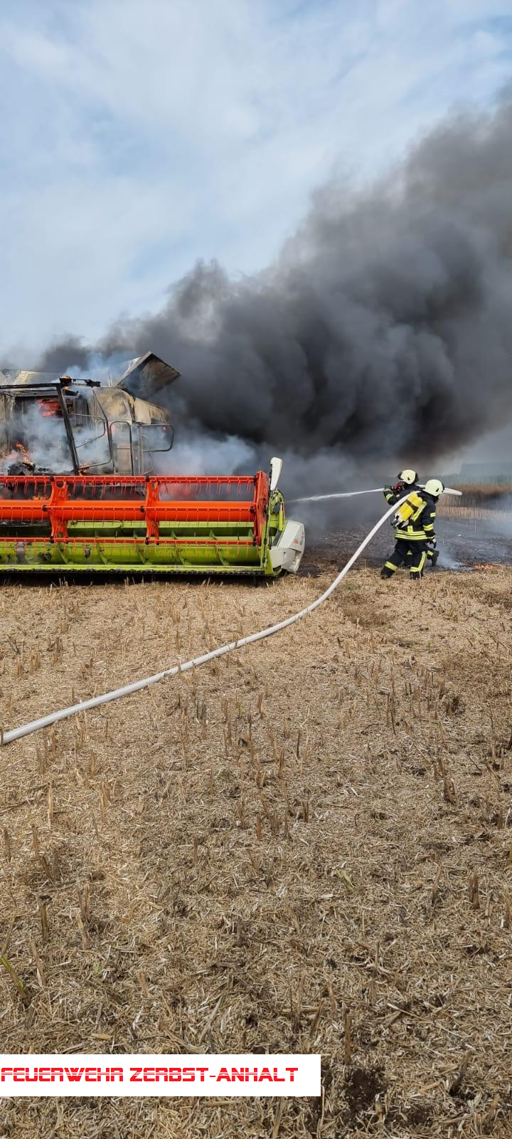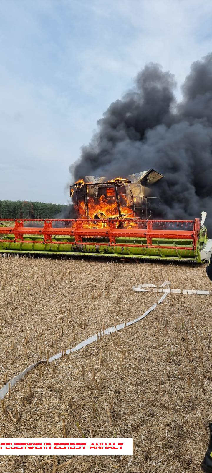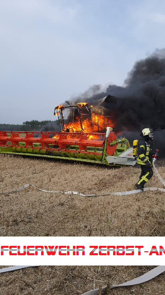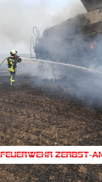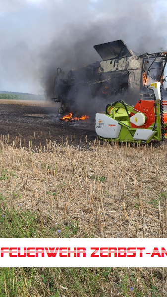 Wir wurden mit den Kameraden der Freiwilligen Feuerwehr Jütrichau zum Brand eines Mähdreschers auf einem Feld zwischen Wertlau und Rodleben alarmiert.