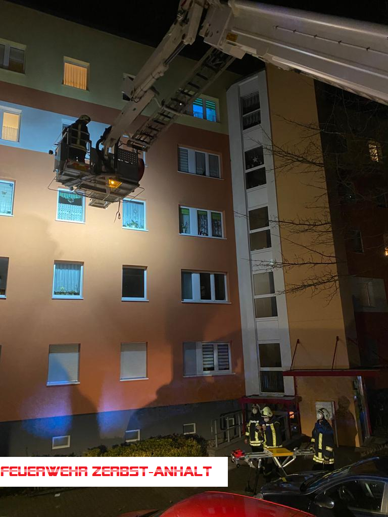 Da auch der liegende Transport durch das enge Treppenhaus schwierig zu bewerkstelligen war, haben wir uns für eine Rettung über den Hubsteiger entschieden.