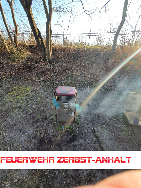 Wir wurden wegen eines brennenden Mülleimers in die Karl-Marx-Straße gerufen. Diesen fanden wir tatsächlich am dortigen Spielplatz vor.