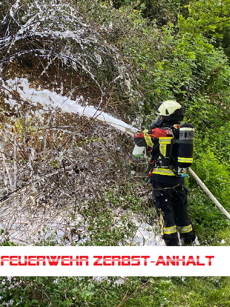 Hier brannte trockenes Gebüsch und Strauchwerk; das Feuer drohte, sich auf weitere Hecken und Bäume auszubreiten. Das konnten wir durch einen schnellen Löschangriff mit einem C-Strahlrohr verhindern. Nach dem Ablöschen haben wir die Brandstelle mit Schaum abgedeckt.