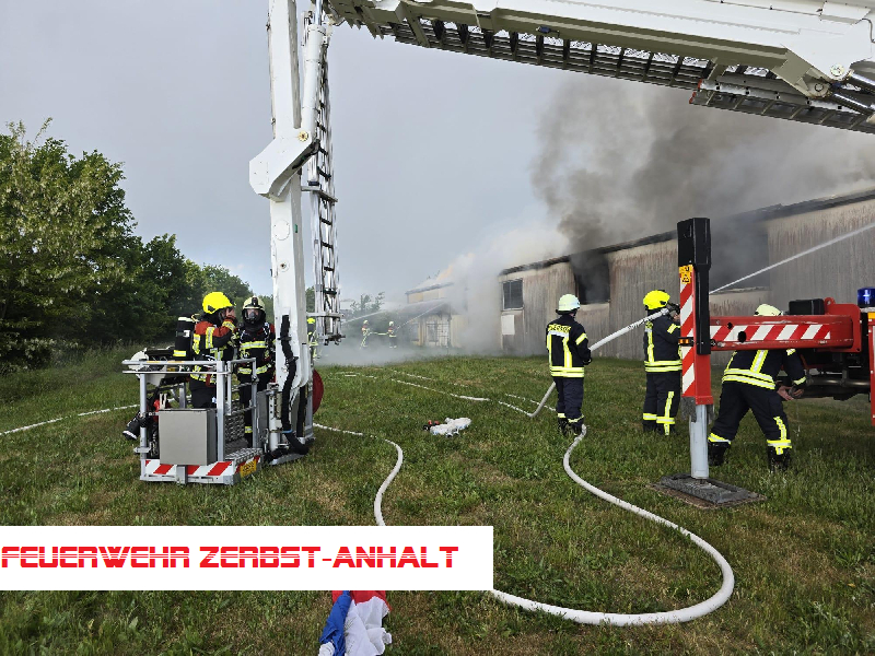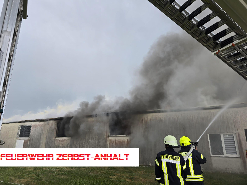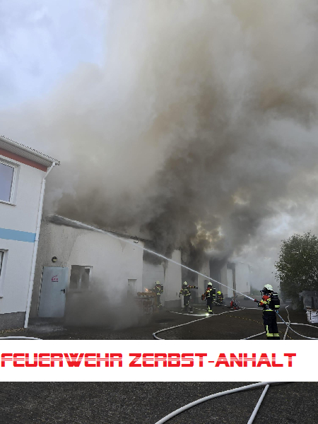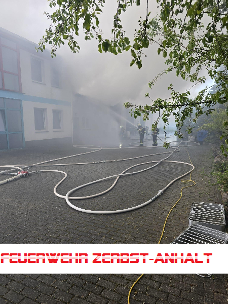 Noch in der Anfangsphase des Brandes waren wir darüber informiert worden, dass sich im hinteren Bereich der Halle der abgetrennte Probenraum der Zerbster Band Empire befindet, in dem etliche hochwertige Instrumente und weiteres Equipment gelagert war. Da sich das Feuer zu diesem Zeitpunkt noch nicht in diesen Bereich ausgebreitet hatte, konnte ein Trupp unter Atemschutz die Sachen in Sicherheit bringen.