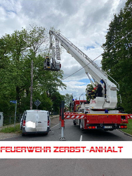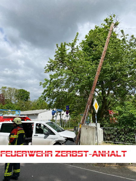 Der Transporter war infolge des Unfalls gegen einen hölzernen Masten der Straßenbeleuchtung und einen Stromverteilerkasten geprallt. Der Mast hatte eine gefährliche Schieflage eingenommen und die Freileitungen hingen deshalb so tief, dass ein gefahrloses Passieren des Bereichs weder für Fahrzeuge noch für Fußgänger möglich war.