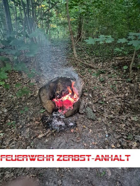 Wir wurden wegen einer "unklaren Rauchentwicklung" in den Waldfrieden gerufen. Hier fanden wir nach kurzer Suche einen brennenden Baumstamm.