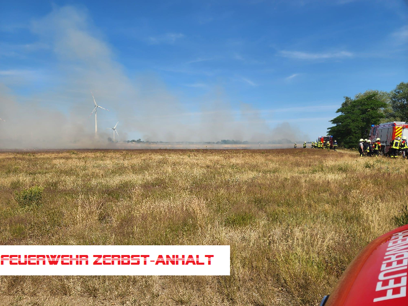 Wir wurden zu einem Feldbrand am Boneschen Weg alarmiert. Da sich unser HLF in der Werkstatt befand, alarmierte die Leitstelle sofort auch die Freiwillige Feuerwehr Jütrichau.