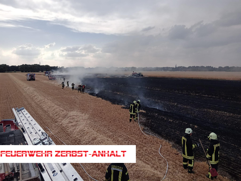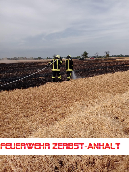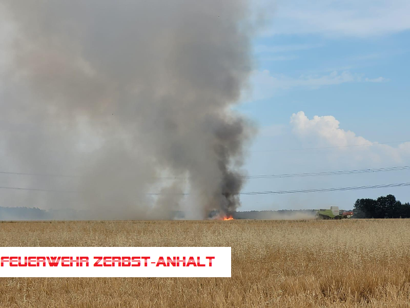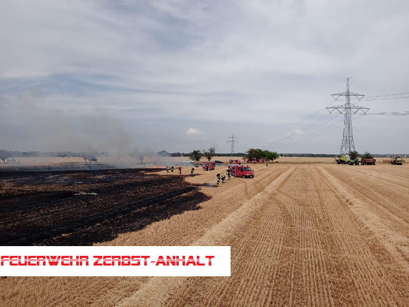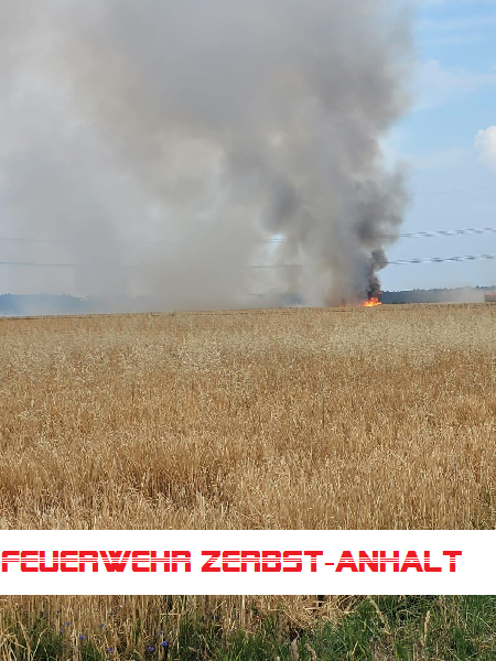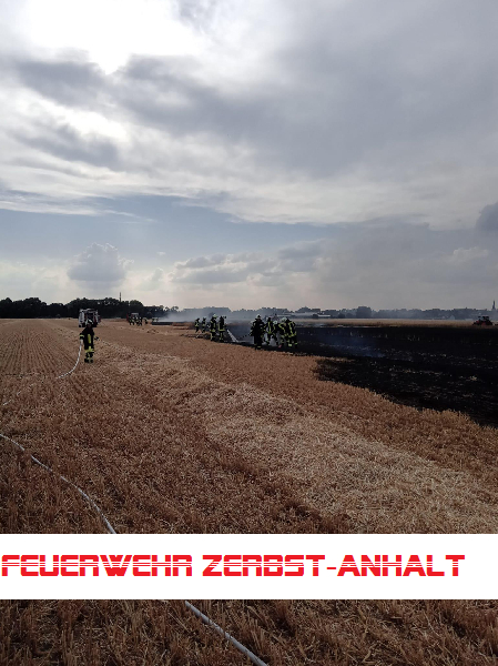 Bei Luso war es während laufender Erntearbeiten zu einem Brand gekommen, der sich letztendlich auf ca. 3 Hektar erstreckte. Das Feuer wurde mit mehreren Strahlrohren sowie Feuerpatschen bekämpft. Ein Übergreifen auf ein benachbartes noch nicht abgeerntetes Feld konnten wir verhindern, ebenso die Ausbreitung auf einen großen noch nicht abgeernteten Teil des betroffenen Feldes. Hierbei unterstützten uns die anwesenden Arbeiter mit einem Wasserwagen und einer Scheibenegge. Zusätzlich wurde in Luso eine Wasserentnahmestelle eingerichtet.
