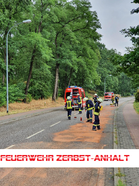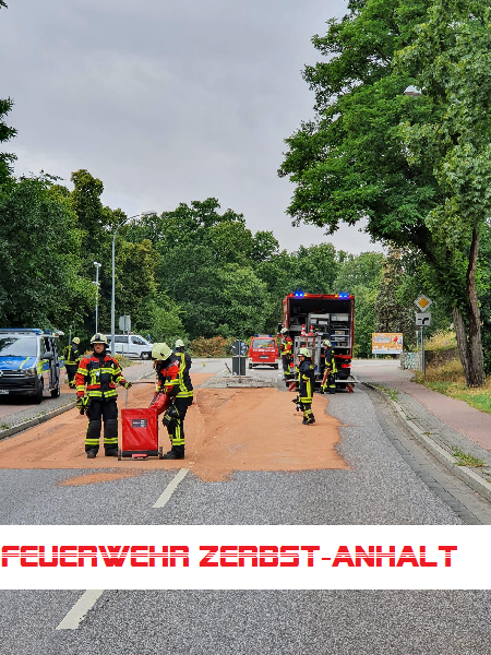 Das Öl wurde mit Bindemittel aufgenommen, hierzu musste die Straße Alter Teich voll gesperrt werden.