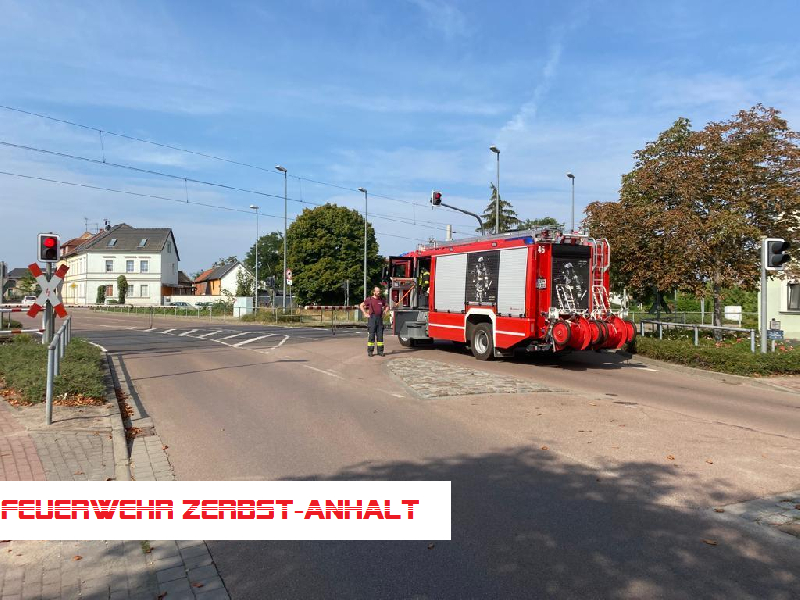 Heute Morgen wurden wir mit den Kameraden aus Jütrichau und Steutz zum Bahnübergang Kastanienallee gerufen. Nach den ersten Meldungen sind wir von einem Unfall zwischen einem Fahrzeug und einem Zug ausgegangen.
