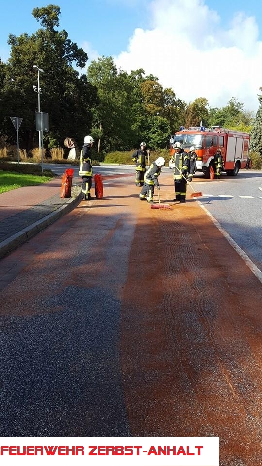 Eine Dieselspur erstreckte sich von der Puspfordaer Straße über die Dobritzer Straße, Heidetor, Alter Teich, Roßlauer Straße. Die Straße wurde mit Bindemittel abgestumpft und das Bindemittel einer fachgerechten Entsorgung zugeführt.