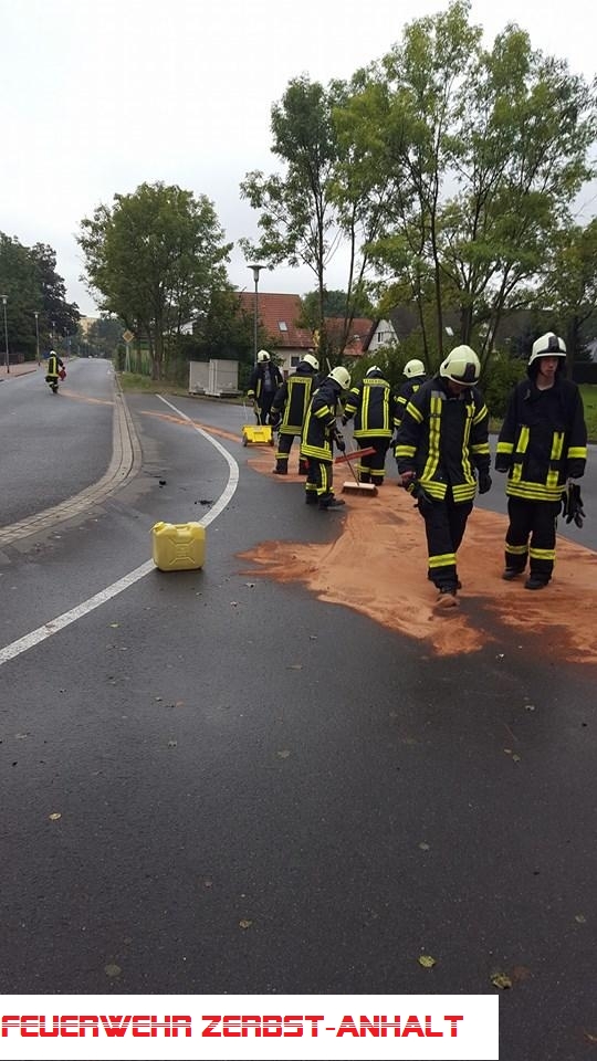 Beiseitigung einer Spur aus Mötorenöl von der Martin-Luther Promenade über die Ankuhnsche Straße und Lindauer Straße bis zum Ortsausgang mittels Bindemittel