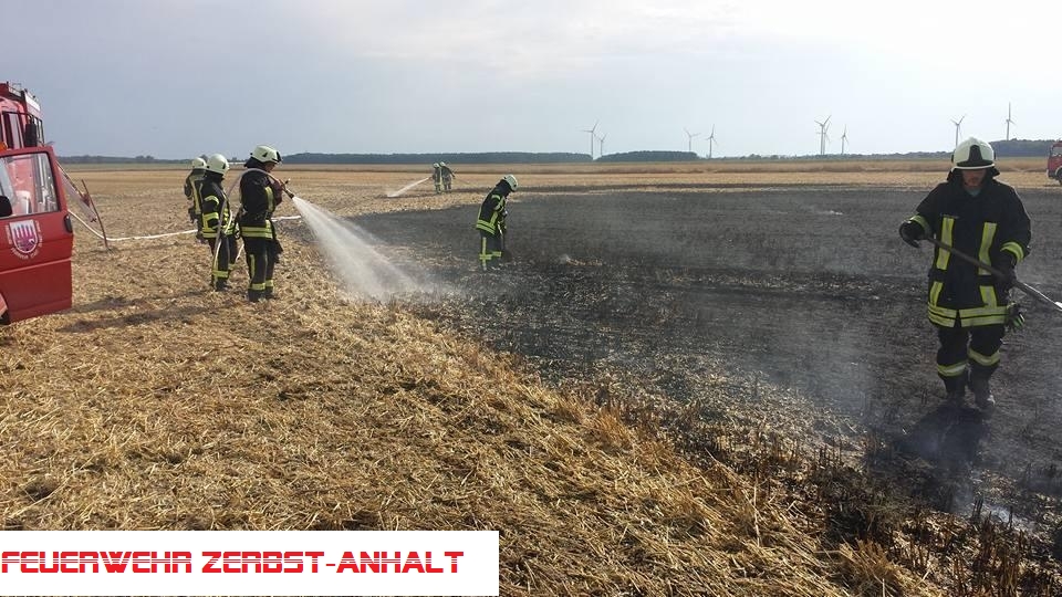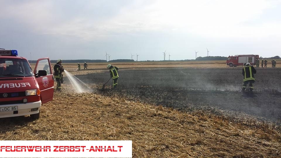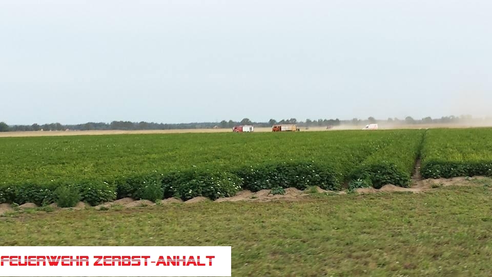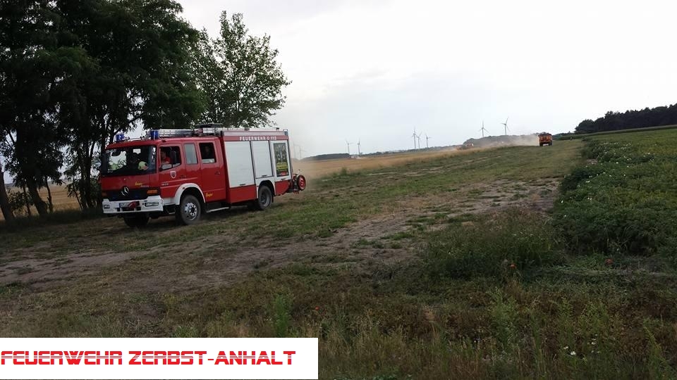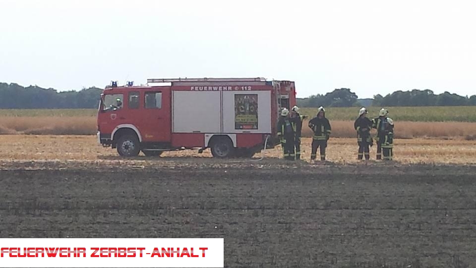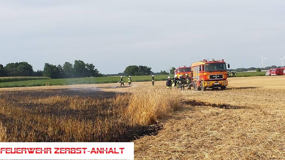 Während der Erntearbeiten auf dem Getreidefeld kam es zum Feldbrand von ca. 100 x 100 m Größe.