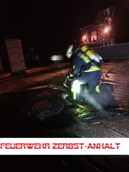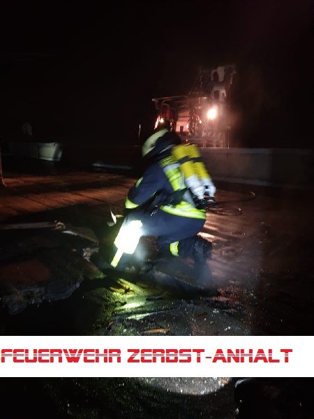 Zur Brandbekämpfung musste sowohl die Deckenverkleidung im Obergeschoss eingerissen als auch das Flachdach - teilweise unter Zuhilfenahme einer Kettensäge - aufgenommen werden. Das Feuer wurde von innen und außen mit 2 Strahlrohren gelöscht, anschließend haben wir den betroffenen Bereich mit der Wärmebildkamera kontrolliert.