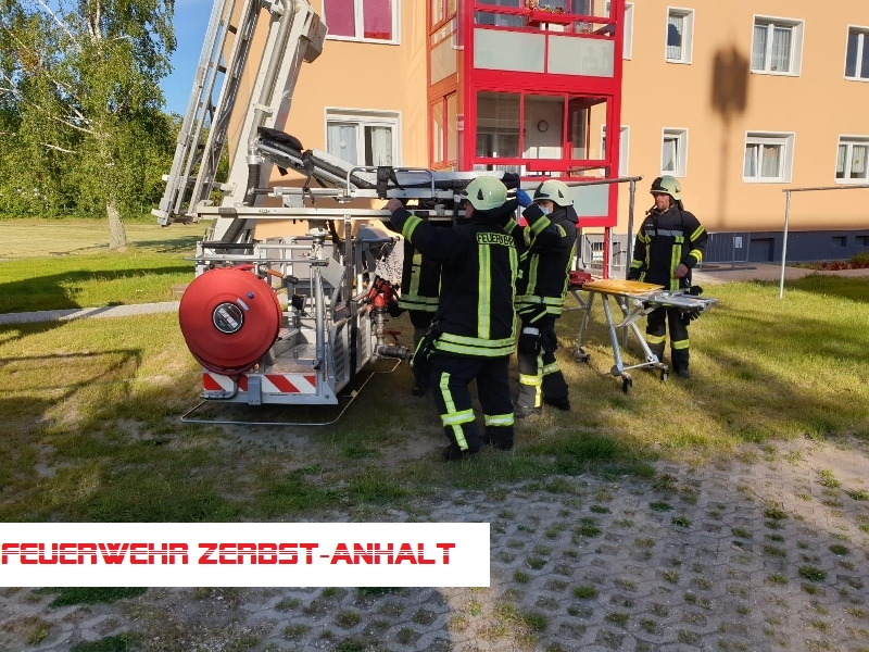 Die Tür konnte wieder schnell und ohne Schäden geöffnet werden. Allerdings war aufgrund der befürchteten Verletzungen ein Transport durch das enge Treppenhaus nicht möglich; der vorhandene Aufzug war zu klein. Deshalb haben wir die Patientin mit dem Hubsteiger schonend aus dem 4. Stock nach unten gebracht.