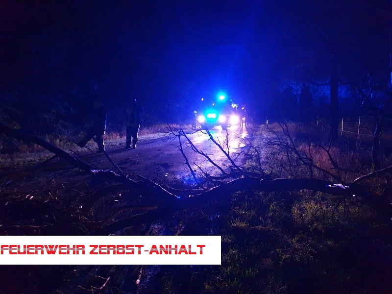 Wir wurden wegen eines umgestürzten Baumes alarmiert. Allerdings waren die Angaben zum Ort ungenau. Zunächst hieß es, der Baum würde auf der Straße Richtung Lindau liegen. Tatsächlich fanden wir dann einen Baum auf der Straße Richtung Deetz nahe der Zollmühle.