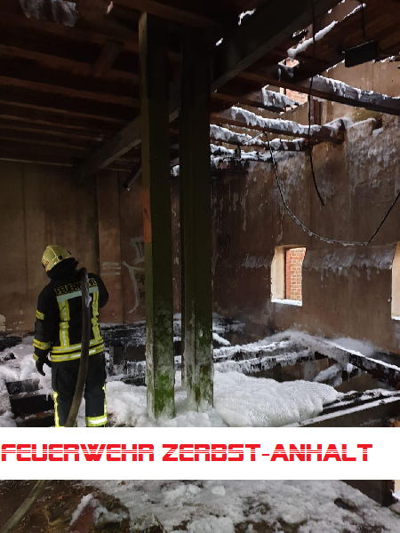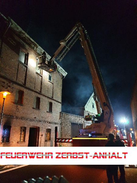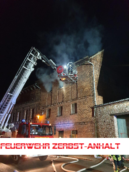 Erneut wurden wir zur Ankuhnschen Mühle in der Lindauer Straße gerufen. Es brannte in dem leerstehenden Gebäude an zwei Stellen im Erdgeschoss, teilweise hatte sich das Feuer bereits bis ins Dachgeschoss ausgebreitet.