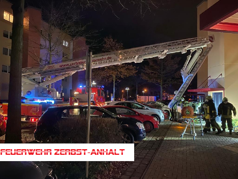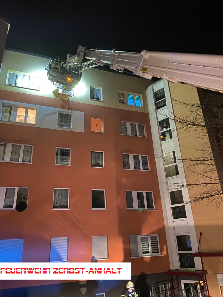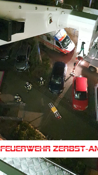 Da auch der liegende Transport durch das enge Treppenhaus schwierig zu bewerkstelligen war, haben wir uns für eine Rettung über den Hubsteiger entschieden.