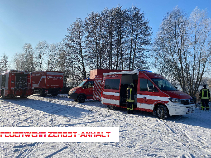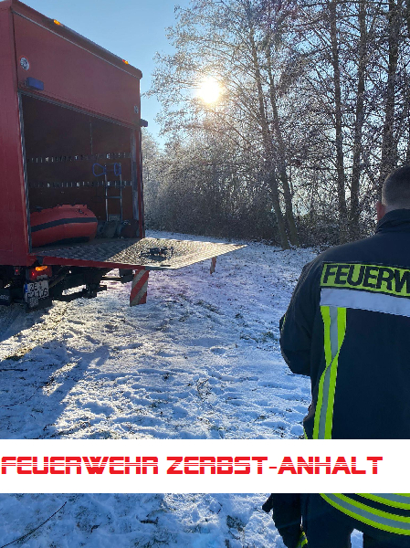 Wir wurden alarmiert, weil eine Spaziergängerin auf der ehemaligen Kiesgrube fünf vermeintlich festgefrorene Schwäne bemerkt hatte.
