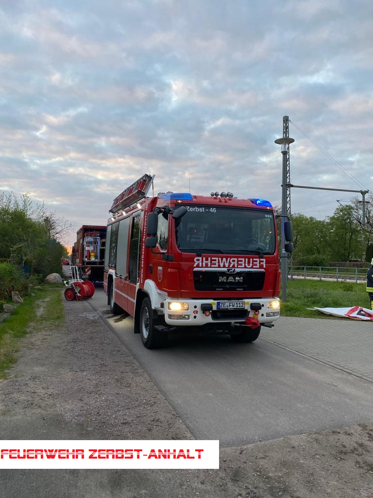 Wir wurden zu einem Bahnunfall auf dem Gleis 2 des Zerbster Bahnhofs alarmiert. Hier war eine Person von einem durchfahrenden Zug erfasst worden, leider kam jede Hilfe zu spät.