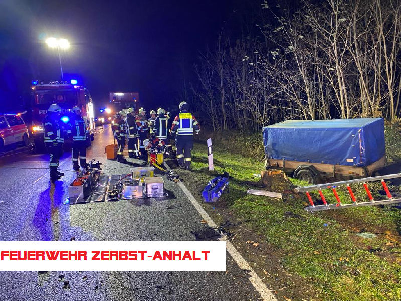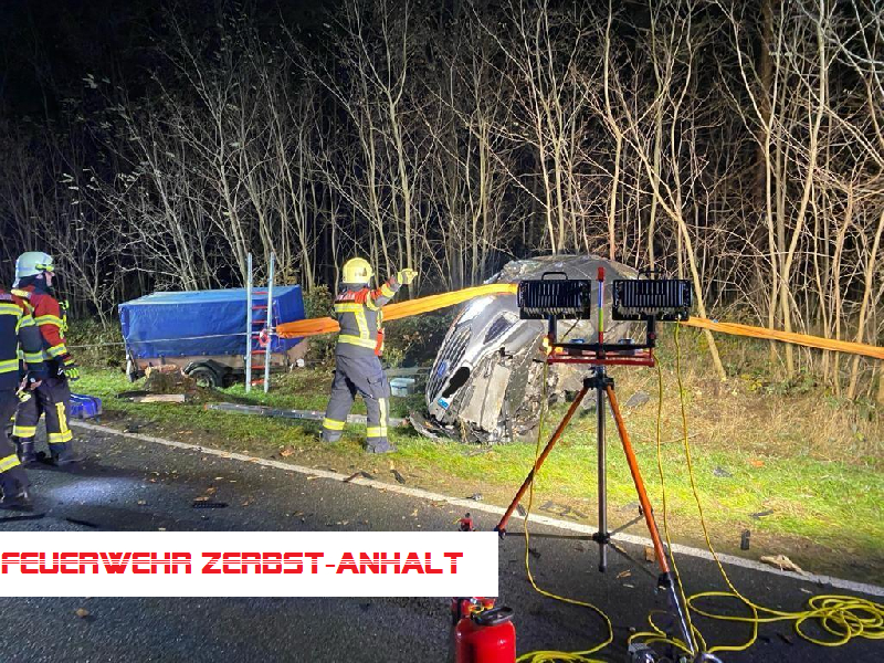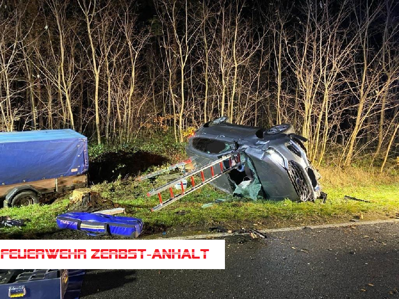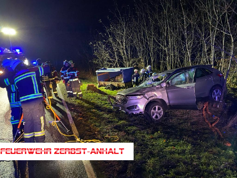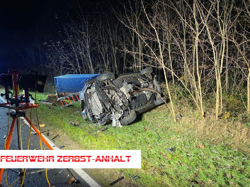Wir wurden mit den Kameraden der Freiwilligen Feuerwehr Jütrichau zu einem Verkehrsunfall auf der B 184 zwischen Jütrichau und Tornau alarmiert. Hier war ein PKW von der Straße abgekommen, hatte sich vermutlich überschlagen und war auf der Beifahrerseite zum Liegen gekommen. Der Fahrer befand sich bei unserem Eintreffen noch auf dem Fahrersitz.