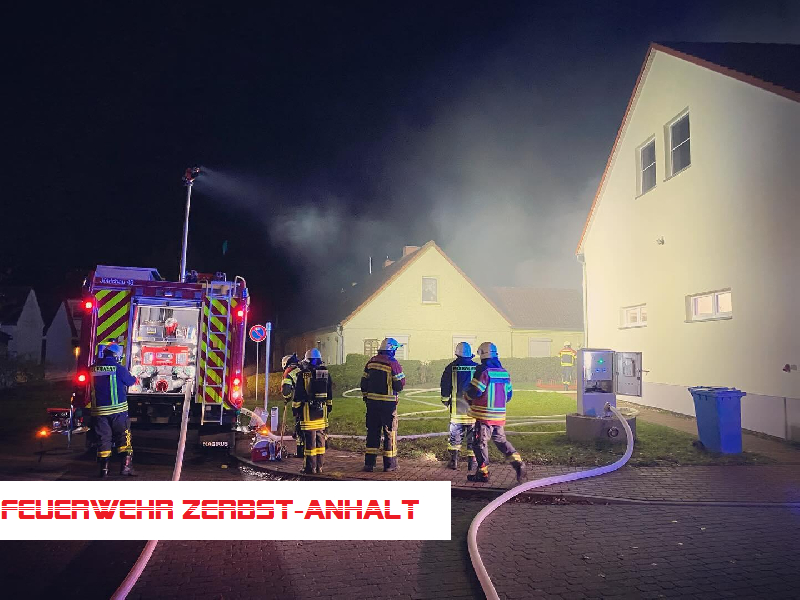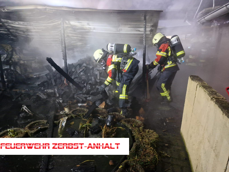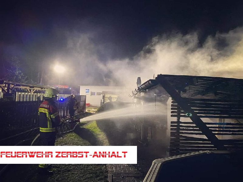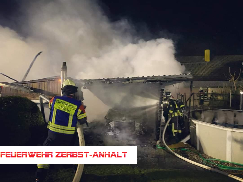 Da sich die Einsatzstelle unmittelbar hinter dem Gerätehaus der Feuerwehr Jütrichau befand, waren die dortigen Kameraden schnell vor Ort. Gemeinsam konnten wir das Übergreifen der Flammen auf die benachbarten Gebäude verhindern; der Carport und der PKW sowie das Gewächshaus wurden jedoch vollständig zerstört.