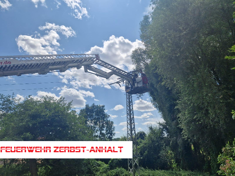 Wir wurden zur Unterstützung der Freiwilligen Feuerwehren Walternienburg und Nutha/Hohenlepte nach Kämeritz gerufen. Dort war ein trockener Ast eines Baumes abgebrochen und auf eine Stromleitung gestürzt. Dies hatte zu einem Kurzschluss geführt; auch bestand zunächst die Vermutung, dass es in einer Trafostation zu einem Brand gekommen war. Dies bestätigte sich jedoch nicht.