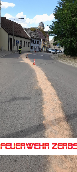 Wir haben die Spur - es handelte sich offenbar um Dieselkraftstoff - mit Bindemittel abgestumpft. Der städtische Bauhof hat entsprechende Warnschilder aufgestellt.