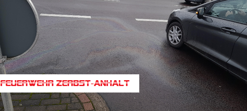 Wir wurden wegen einer großen Benzinpfütze im Bereich der Kreuzung am Markt alarmiert. Bereits auf der Anfahrt stellten wir fest, dass es solche Verschmutzungen auch in weiteren Bereichen der Fuhrstraße gab. Vermutlich handelte es sich um ausgelaufenen Diesekraftstoff.