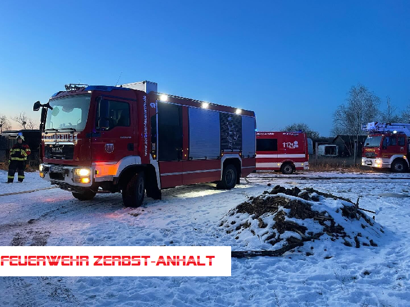 Wir wurden zunächst wegen eines vermeintlichen Ödlandbrandes im Bereich der Biaser Straße alarmiert. Während des Ausrückens änderte die Leitstelle das Einsatzstichwort auf "Brand Gebäude" und alarmierte zusätzlich die Freiwilligen Feuerwehren Güterglück und Jütrichau.