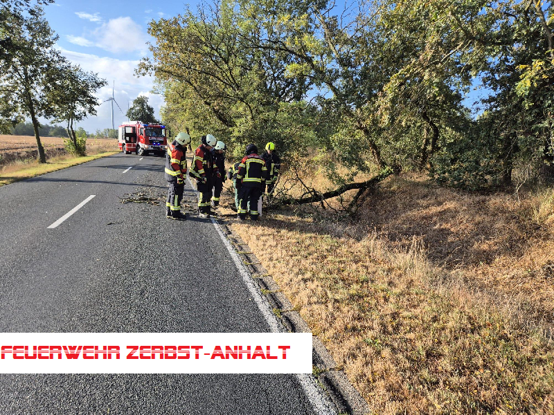 Auf der Straße von Zerbst in Richtung Lindau war ein Baum umgestürzt. Dieser wurde mit der Kettensäge zerlegt und die Straße beräumt.