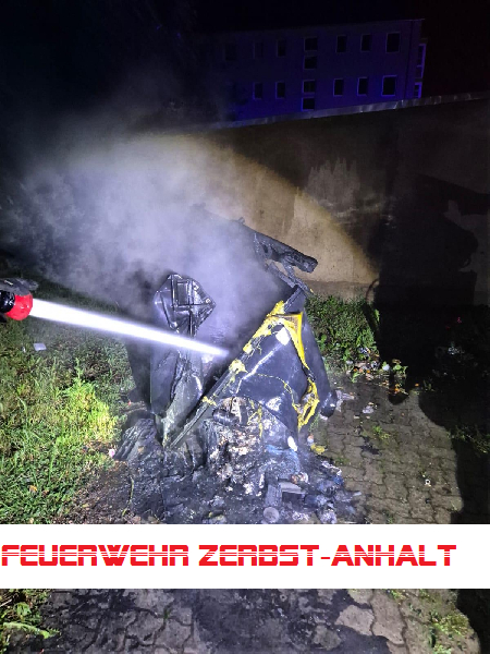 Der Container wurde mit einem C-Strahlrohr gelöscht und die Einsatzstelle an die Polizei übergeben.