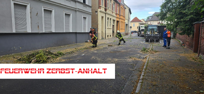 Wir haben begonnen, den Baum an der Fassade zunächst vom Hubsteiger aus abzutragen. Später übernahmen Mitarbeiter des Bauhofes die Sägearbeiten und verluden die Reste des Baumes mit einem Radlader in einen bereitgestellten Container. Wir haben noch lose Dachziegel beseitigt und konnten nach etwas mehr als zwei Stunden zur Wache zurückkehren.