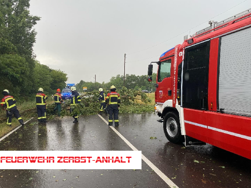 Unser erster von insgesamt 6 Einsätzen führte uns in die Magdeburger Straße. Hier war ein Baum quer über die Straße gestürzt. Der Baum wurde mit der Kettensäge zerlegt und die Straße beräumt.