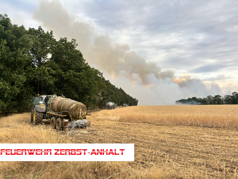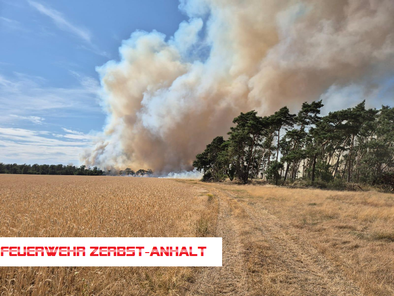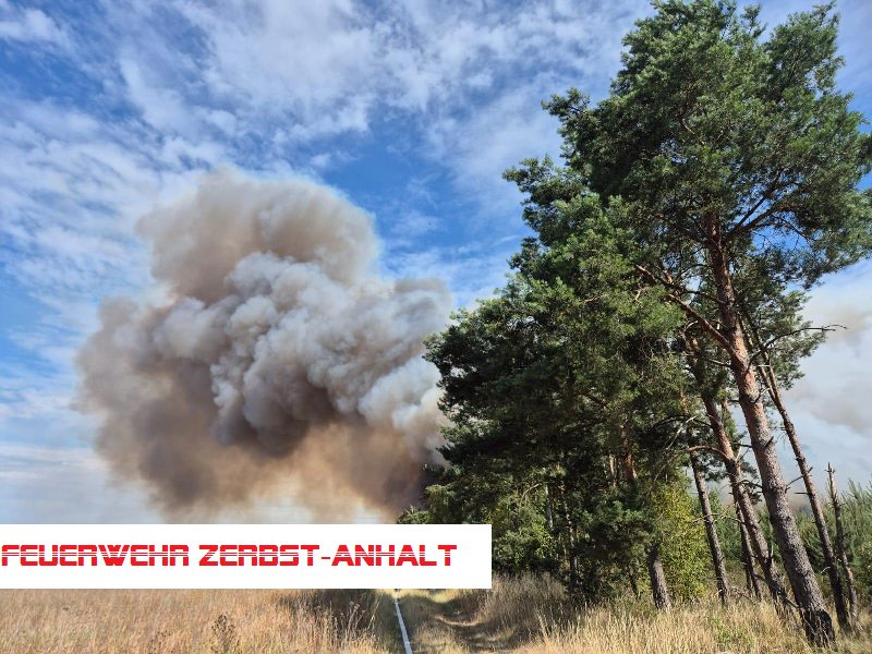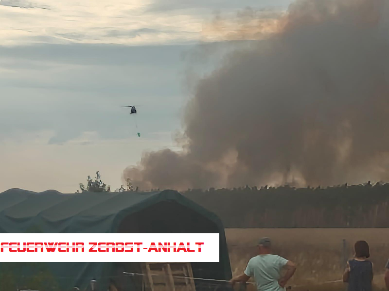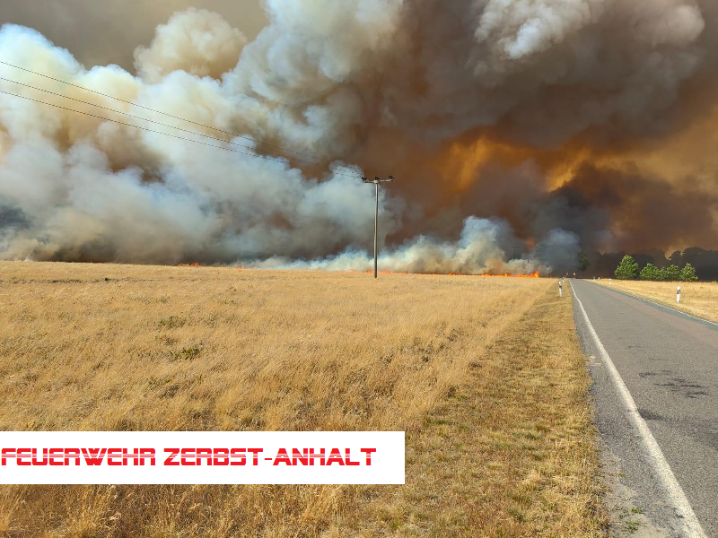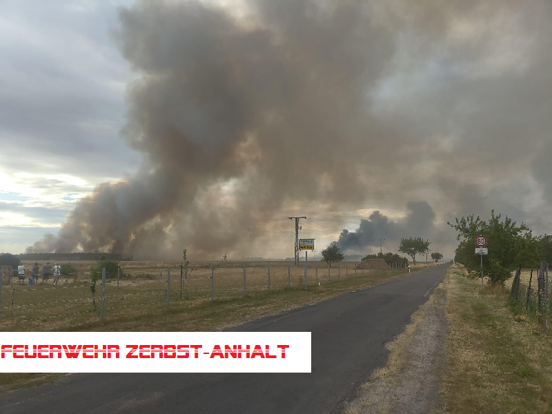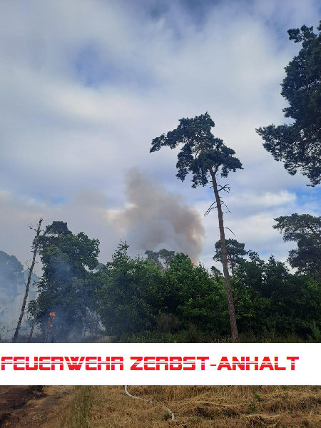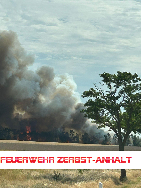 Das Feuer konnte sich bis zur Bahnlinie Zerbst - Dessau ausbreiten und wurde dort von weiteren inzwischen eingetroffenen Kräften aus dem Landkreis gestoppt; auch ein Übergreifen auf die Ortschaft Wertlau konnten wir verhindern. Wertvolle Unterstützung erhielten wir dabei durch einen Polizeihubschrauber, der in der ehemaligen Kiesgrube Pakendorf Wasser fasste und die Löscharbeiten aus der Luft unterstützte, sowie von vielen land- und forstwirtschaftlichen Betrieben der Umgebung, die uns mit Wasserwagen und Scheibeneggen zu Hilfe eilten - vielen Dank dafür!