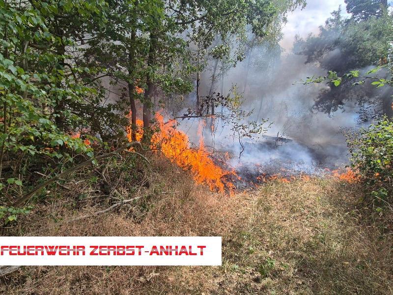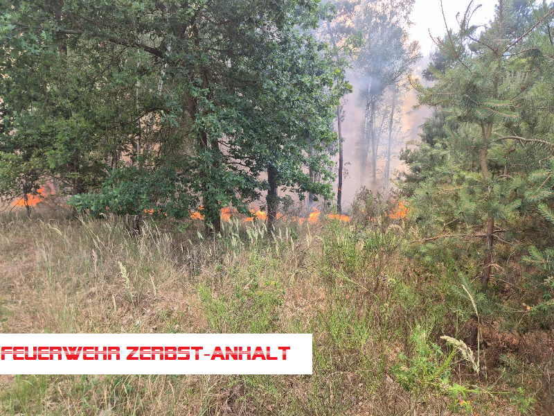 Heute wurden wir - zunächst mit den Feuerwehren aus Jütrichau und Steutz - zu einem Waldbrand bei Pakendorf alarmiert. Bei unserem Eintreffen brannte es etwa 50 Meter im Wald, das Feuer breitete sich im Wald zunächst langsam in nordöstlicher Richtung aus.